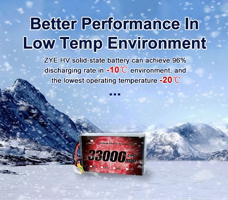 Kinerja cuaca sing adhem: ing iklim sing luwih adhem, baterei lipo asring ngalami kapasitas lan kinerja sing suda. Batré solid-negara, nanging njaga efisiensi sanajan suhu sing sithik, njamin dron tetanèn kanthi efektif kanthi efektif sajrone musim adhem utawa ing musim panas sing adhem.